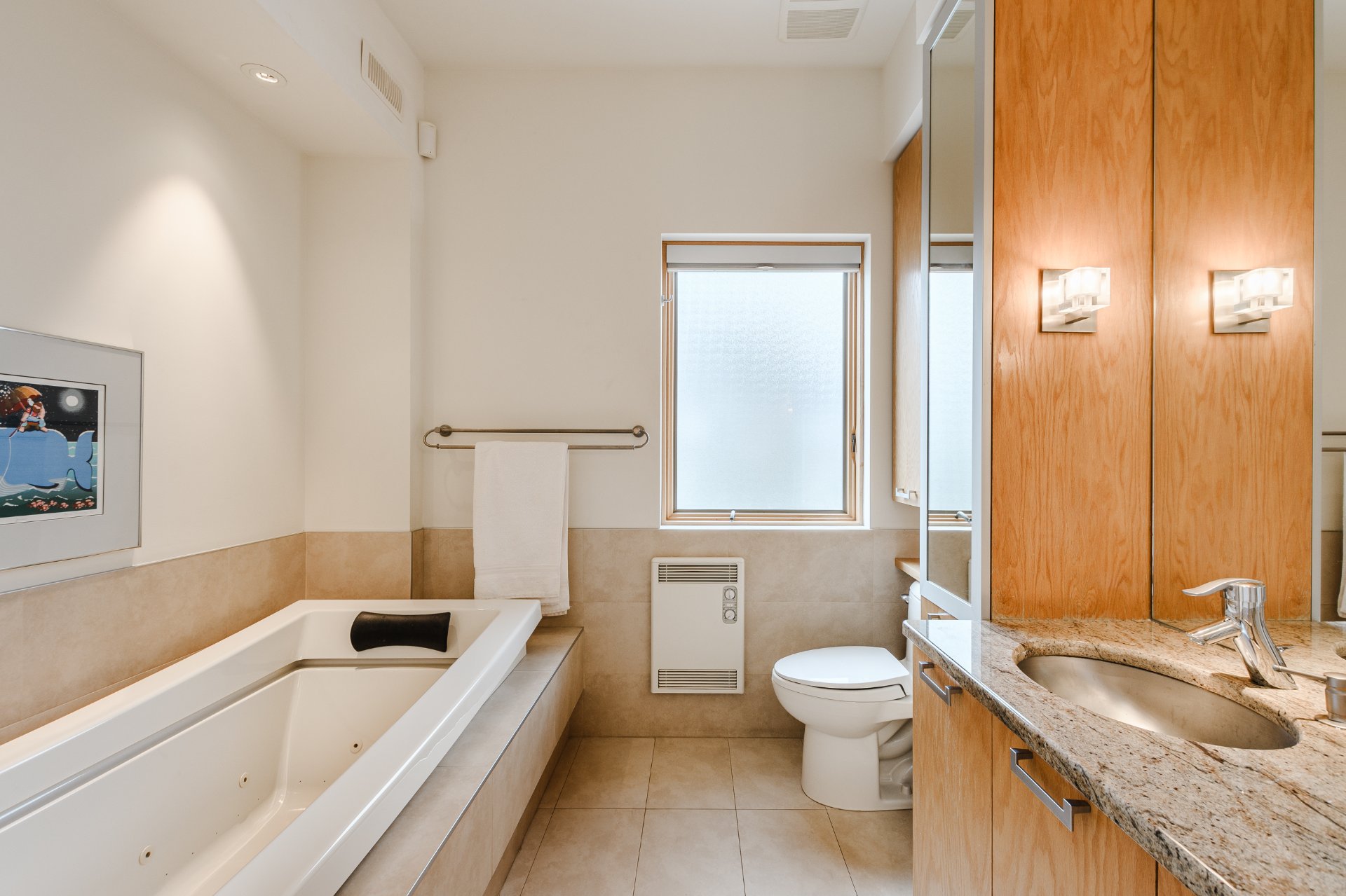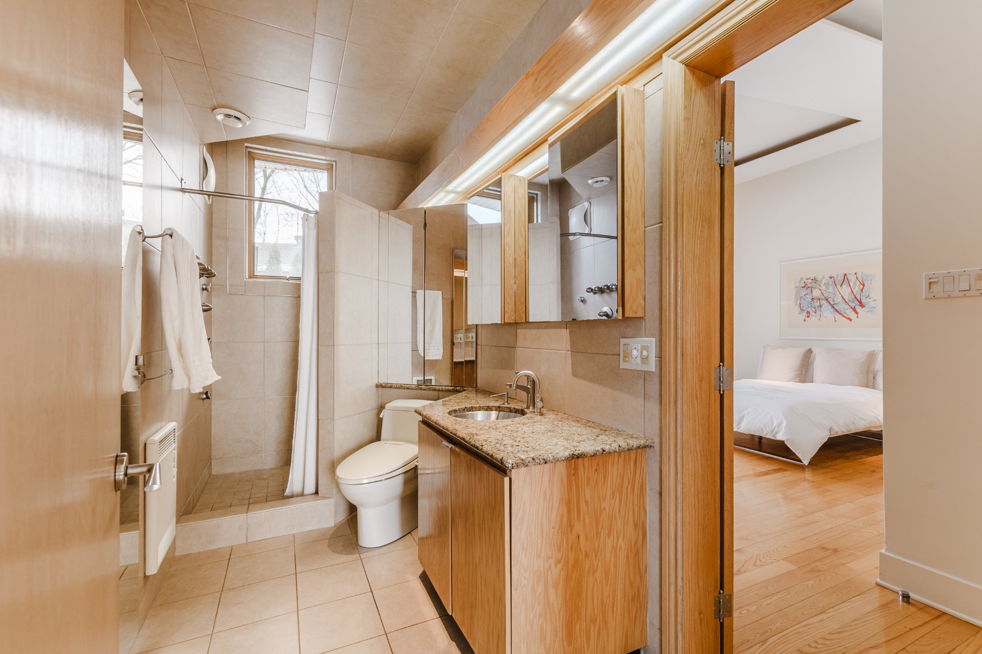 The bedrooms offer peaceful retreats, each designed to maximize light and privacy, while the primary suite benefits from a particularly serene atmosphere.
