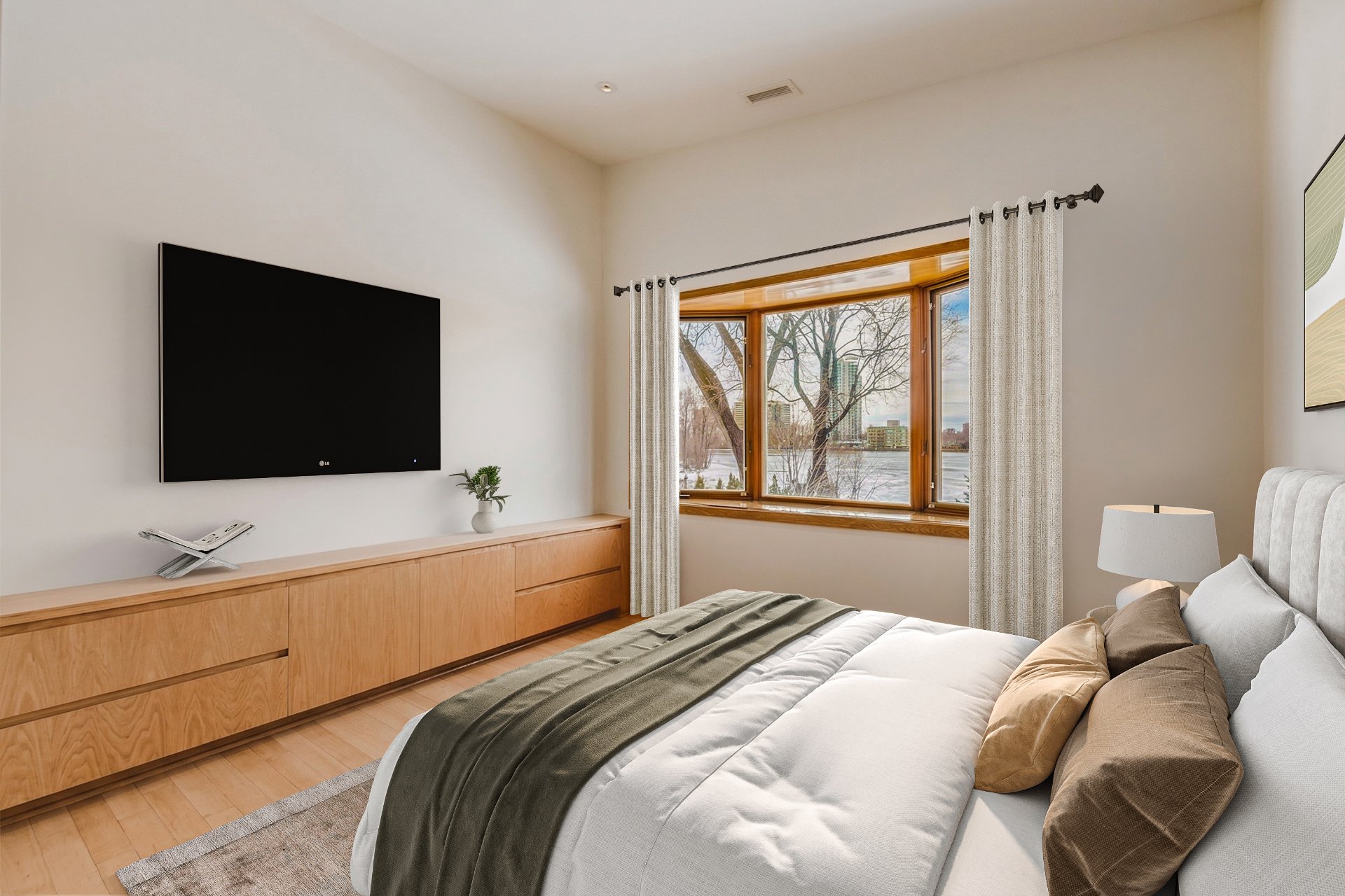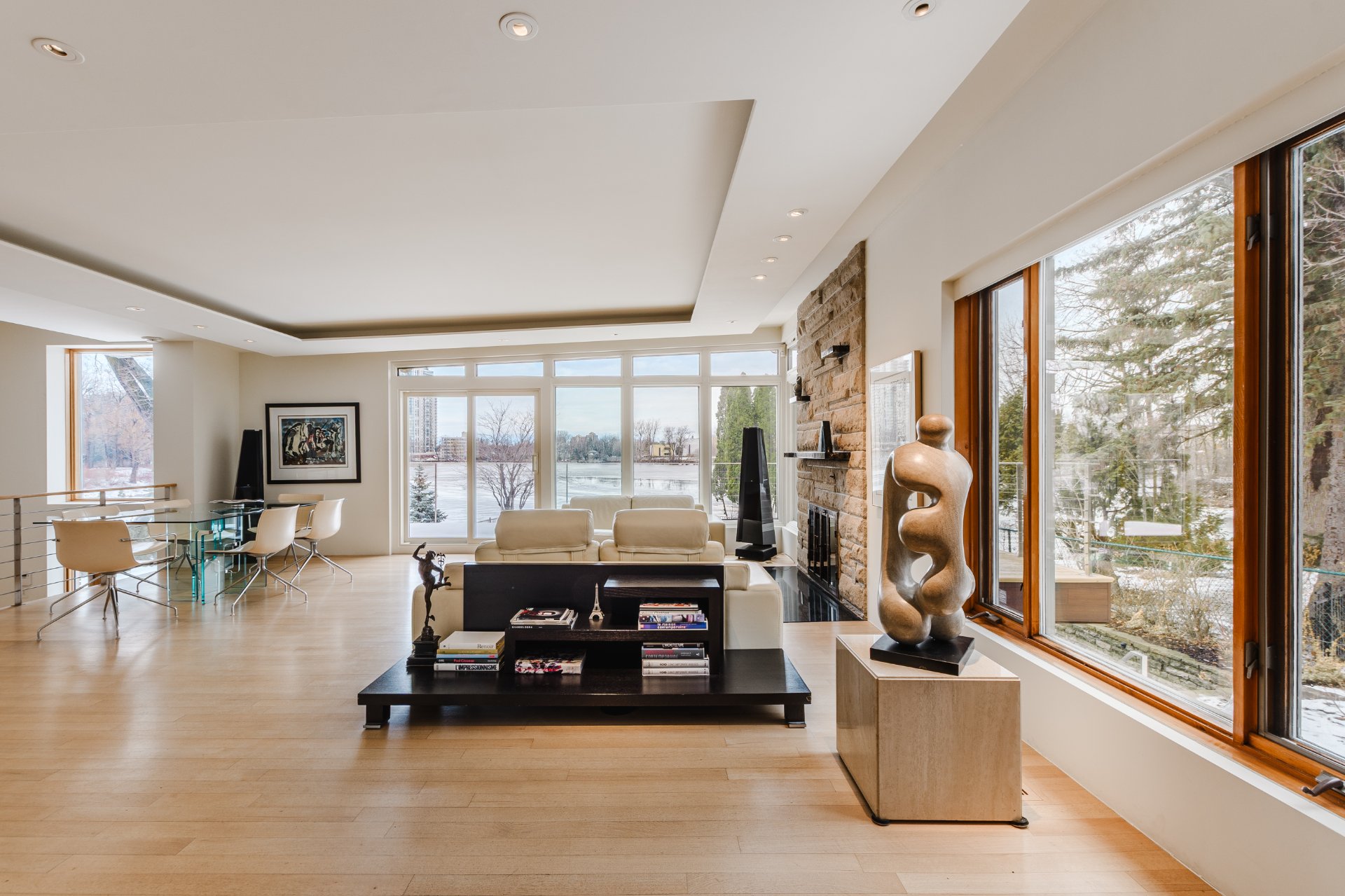 From the moment you enter, the residence reveals refined architecture where clean lines, warm wood tones, and expansive windows create a constant dialogue with the landscape. Generous volumes, recessed lighting, and seamless flow between the living room, dining area, and kitchen elevate the main living spaces with elegance and coherence.